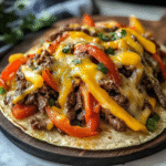 Indulge in the irresistible fusion of classic cheesesteaks and vibrant fajitas with this Cheese Steak Fajitas Recipe. Savor tender strips of flank steak, colorful bell peppers, and gooey cheese, all wrapped in warm flour tortillas. Perfect for busy weeknights or a lively gathering, these fajitas are quick to prepare and packed with flavor that will leave everyone asking for seconds.