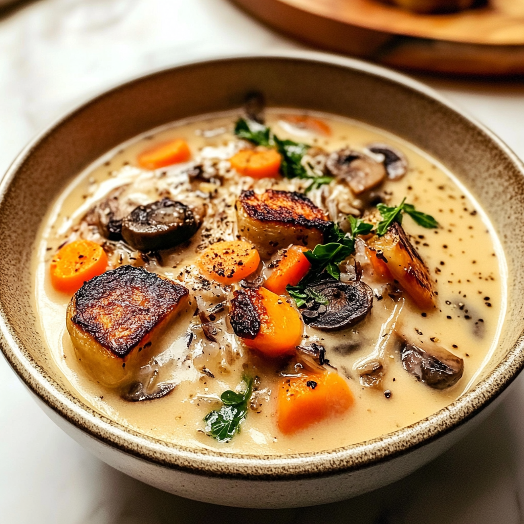 Cozy Autumn Wild Rice Soup is the perfect dish for chilly evenings, combining tender wild rice, vibrant vegetables, and aromatic herbs into a warm and hearty bowl. This comforting soup captures the essence of fall with its earthy flavors and inviting aroma, making it an ideal choice for family gatherings or cozy nights in. Whether enjoyed with crusty bread or a fresh salad, each spoonful delivers warmth and nourishment that will keep everyone coming back for more.