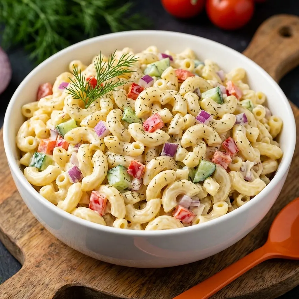 A light and creamy macaroni salad featuring tangy Greek yogurt, fresh vegetables, and zesty herbs. Perfect for gatherings or a satisfying side dish.
