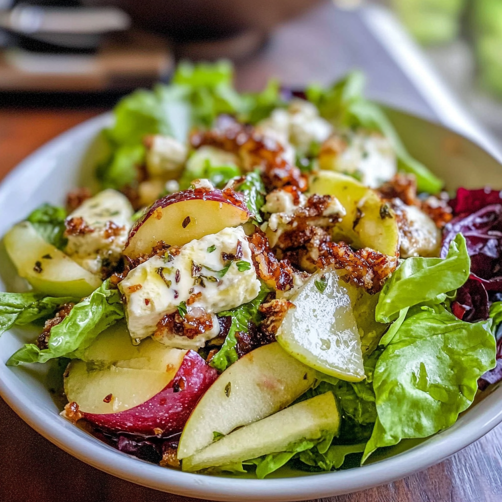 This salad is ideal for any occasion, whether you’re hosting a dinner party, enjoying a cozy family meal, or looking for a light yet indulgent lunch. Each bite combines the crunchy walnuts with the soft cheese and juicy apples, creating an explosion of taste that will keep your taste buds dancing. Prepare to impress your guests or treat yourself to this delicious masterpiece that promises to be an unforgettable culinary experience.
