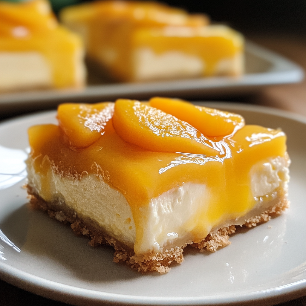 Experience the taste of summer with these Delightful Peaches and Cream Cheesecake Bars. A buttery graham cracker crust supports a creamy, dreamy filling featuring ripe peaches, tangy sour cream, and rich cream cheese. Perfect for gatherings or a sweet indulgence at home, these bars are sure to become a favorite dessert. Serve chilled for a refreshing treat that transports you to sunny orchards with every bite.