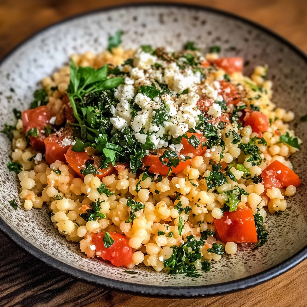 Exquisite Pearl Couscous Skillet with Tomatoes and Feta