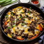 Preparing this Cheesesteak Skillet Recipe Flavorful typically takes about 30-40 minutes from start to finish. The actual cooking time is relatively short since you’re working with thinly sliced beef and quick-cooking vegetables. If you’re short on time during busy weekdays, you can slice your veggies and meat ahead of time for faster assembly when you’re ready to cook.