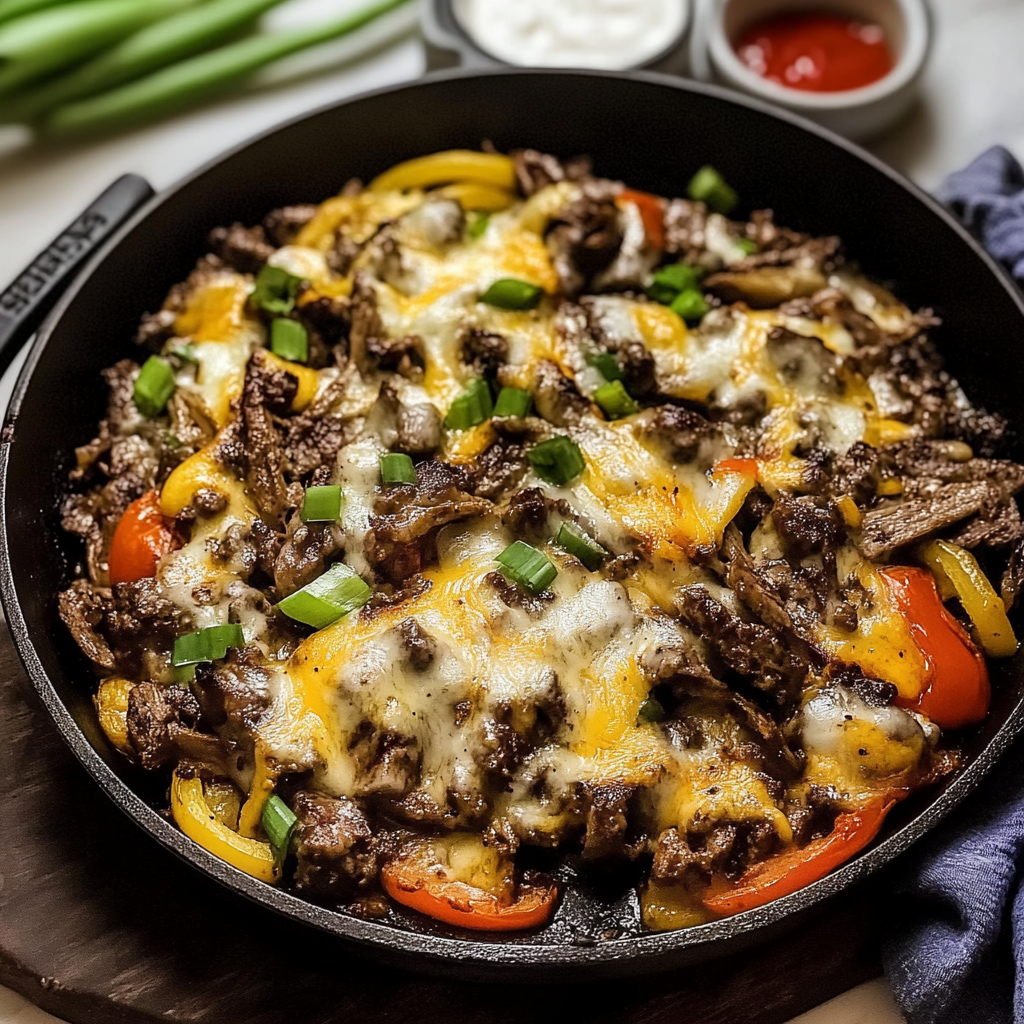 The secret to making this Cheesesteak Skillet Recipe Flavorful lies in using high-quality ingredients such as fresh vegetables and tender cuts of beef. The combination of sautéed onions and bell peppers adds sweetness and depth to each bite. Plus, incorporating spices like garlic powder or paprika can elevate the flavor profile significantly. Using a blend of cheeses also contributes to that gooey texture we all love in cheesesteaks.