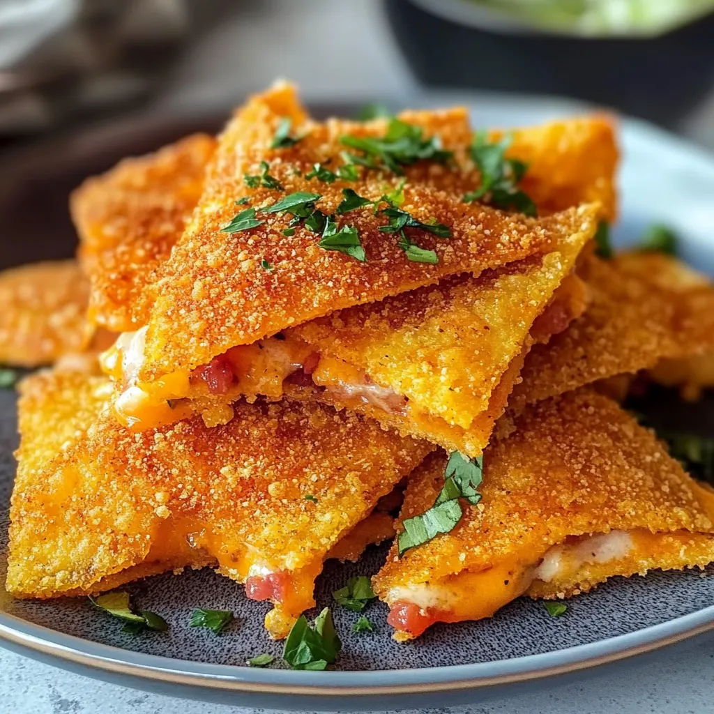 Proudly present your Fried Cheese Stuffed Doritos on a colorful platter adorned with fresh herbs like parsley or cilantro for added flair. Serve them alongside dipping sauces such as spicy salsa or creamy ranch dressing to elevate their taste profile further. Consider using small paper cups or cones filled with these treats for a fun street-food vibe at your next gathering!