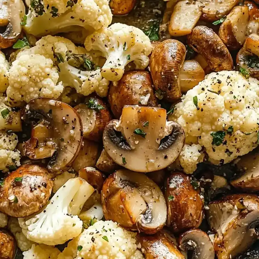 A creamy, garlicky cauliflower and mushroom skillet that’s quick to cook and satisfies cravings with bold, comforting flavors.