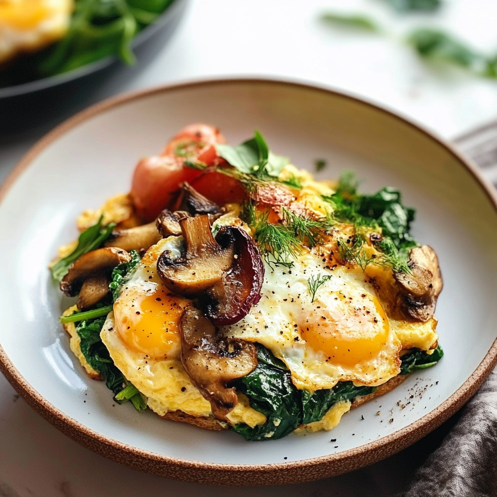 This dish is packed with nutrients! Spinach is rich in vitamins A and C, iron, and magnesium, while mushrooms provide antioxidants and B vitamins. Eggs are an excellent source of protein and essential fatty acids. Together, these ingredients create a balanced meal that supports overall health.