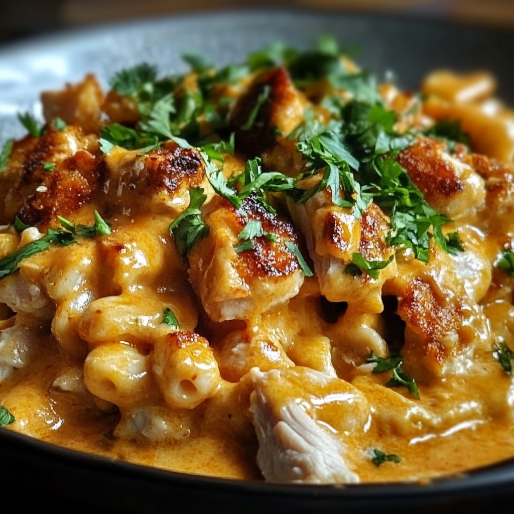Imagine a cozy evening with friends or family, where laughter fills the air and delicious aromas waft from the kitchen. This rich and savory mac n cheese, infused with spicy sweetness and topped with perfectly cooked chicken, brings warmth to any gathering. Whether it’s game night, a potluck, or simply a family dinner, this recipe promises to be the star of the show. Get ready for an explosion of flavor that will keep everyone coming back for seconds!