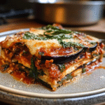 The combination of eggplant and arugula sets this lasagna apart from traditional recipes. Eggplants add a meaty texture while absorbing marinara’s rich flavors, creating layers of taste that surprise the palate. The zesty arugula introduces a peppery note that contrasts beautifully with the sweetness of tomatoes in the marinara sauce.