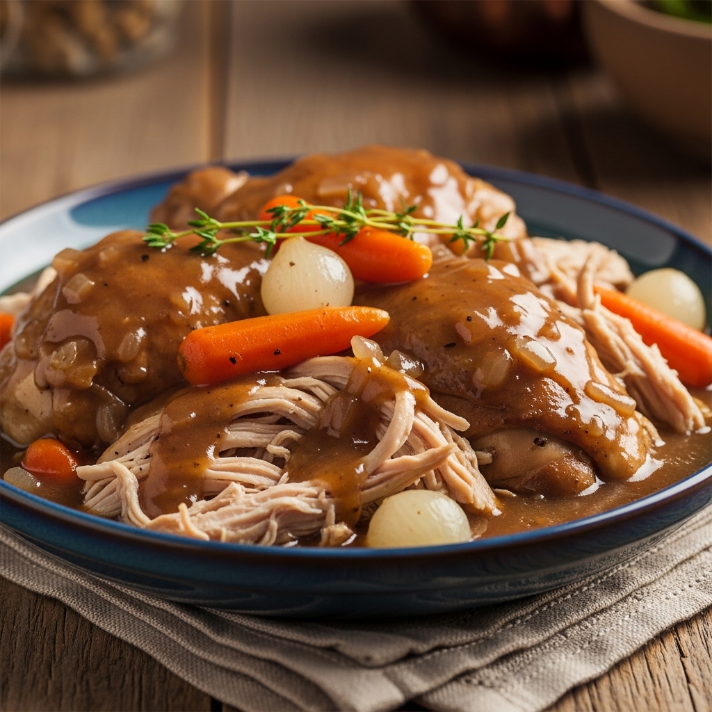 Crockpot Chicken and Gravy Rich is not only delicious but also provides a satisfying meal option. Each serving contains protein from the chicken along with essential vitamins from any added vegetables. Adjusting portion sizes and pairing with healthier sides can help cater to different dietary preferences while ensuring everyone enjoys this comforting dish.FAQs
