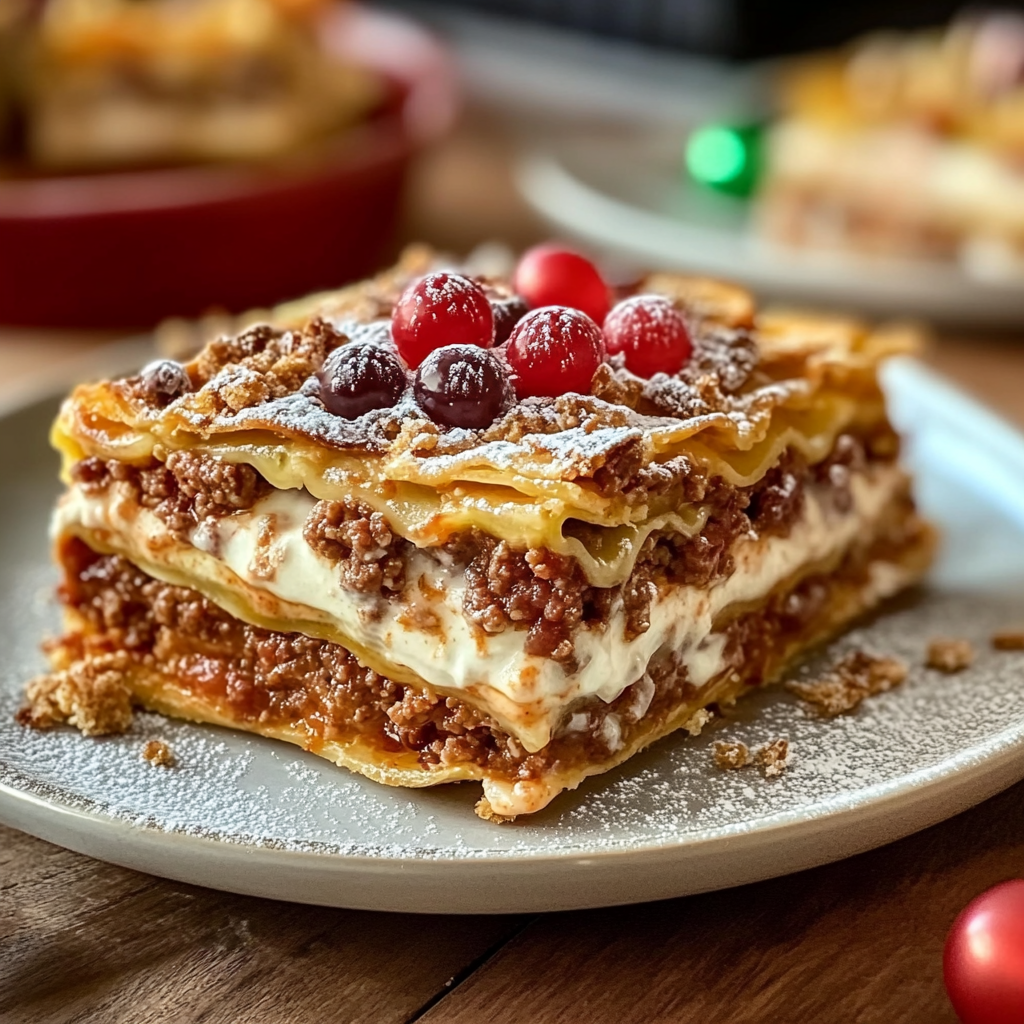 Crushed Candy Canes: Sprinkle crushed candy canes over the top for a festive touch. This addition brings a delightful crunch and peppermint flavor, making your Christmas lasagna cake even more special during the holiday season.