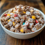 In fact, making it ahead often enhances its flavor as the ingredients meld together over time. Store the finished puppy chow in an airtight container to maintain freshness until you’re ready to serve. Just remember that if you add any toppings like sprinkles or candies, it’s best to do so right before serving for optimal appearance and crunchiness.