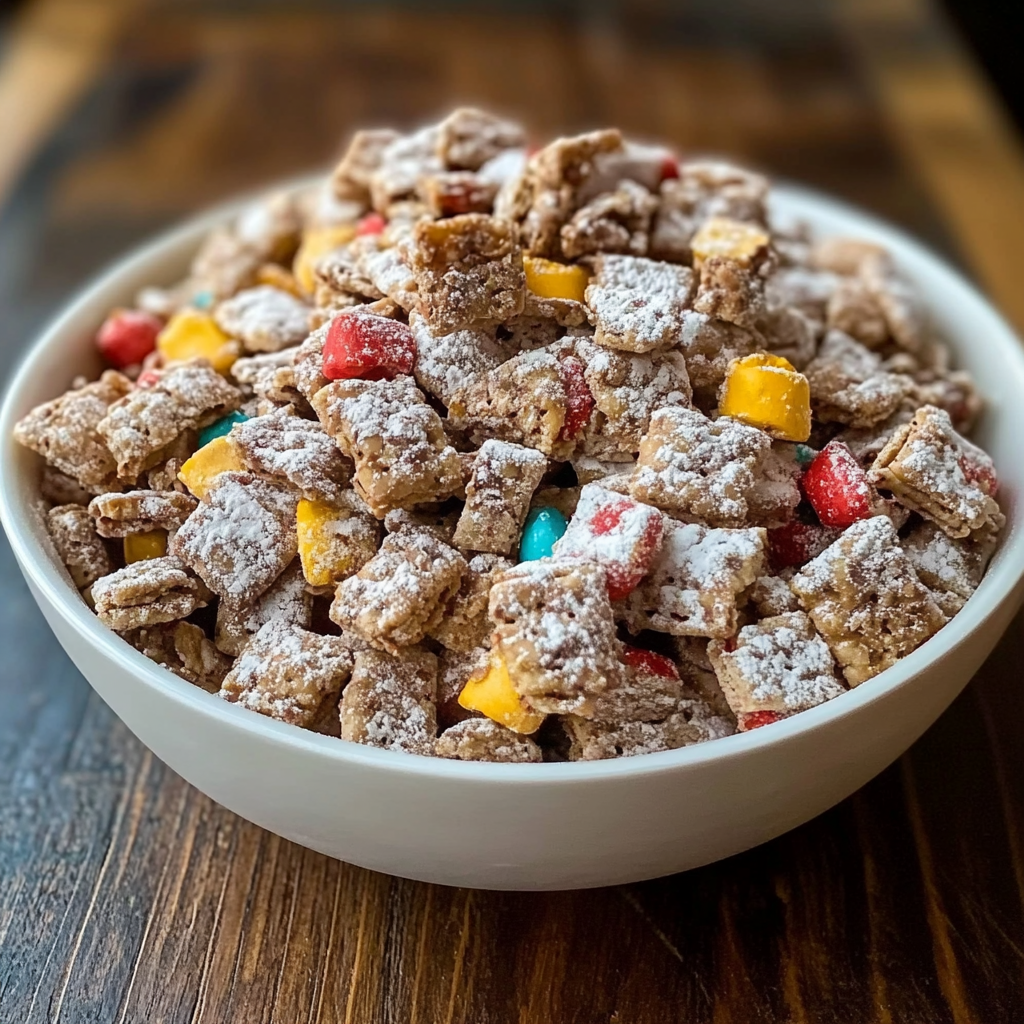 Indulge in the festive spirit with this Rich Christmas Puppy Chow, a delightful blend of crispy Rice Chex cereal enveloped in creamy peanut butter and rich chocolate, finished with a dusting of powdered sugar. Perfect for holiday gatherings or cozy nights at home, this sweet treat brings joy to every occasion. Add crushed candy canes for an extra festive touch!