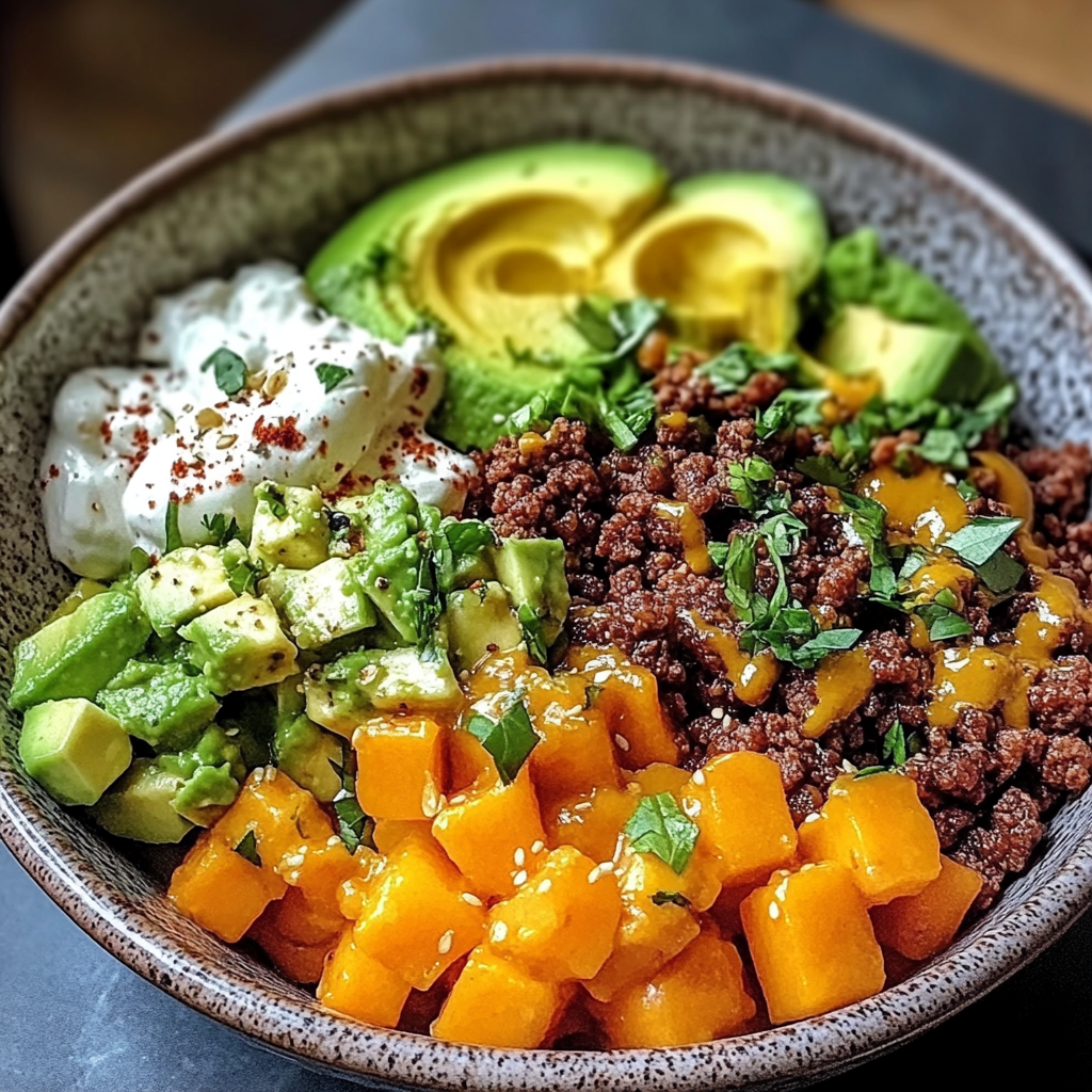 The Irresistible Sweet Potato, Beef & Avocado Protein Bowl is not only delicious but also packed with nutrients. Sweet potatoes are rich in vitamins A and C as well as fiber, which supports digestive health. They provide sustained energy due to their complex carbohydrates.