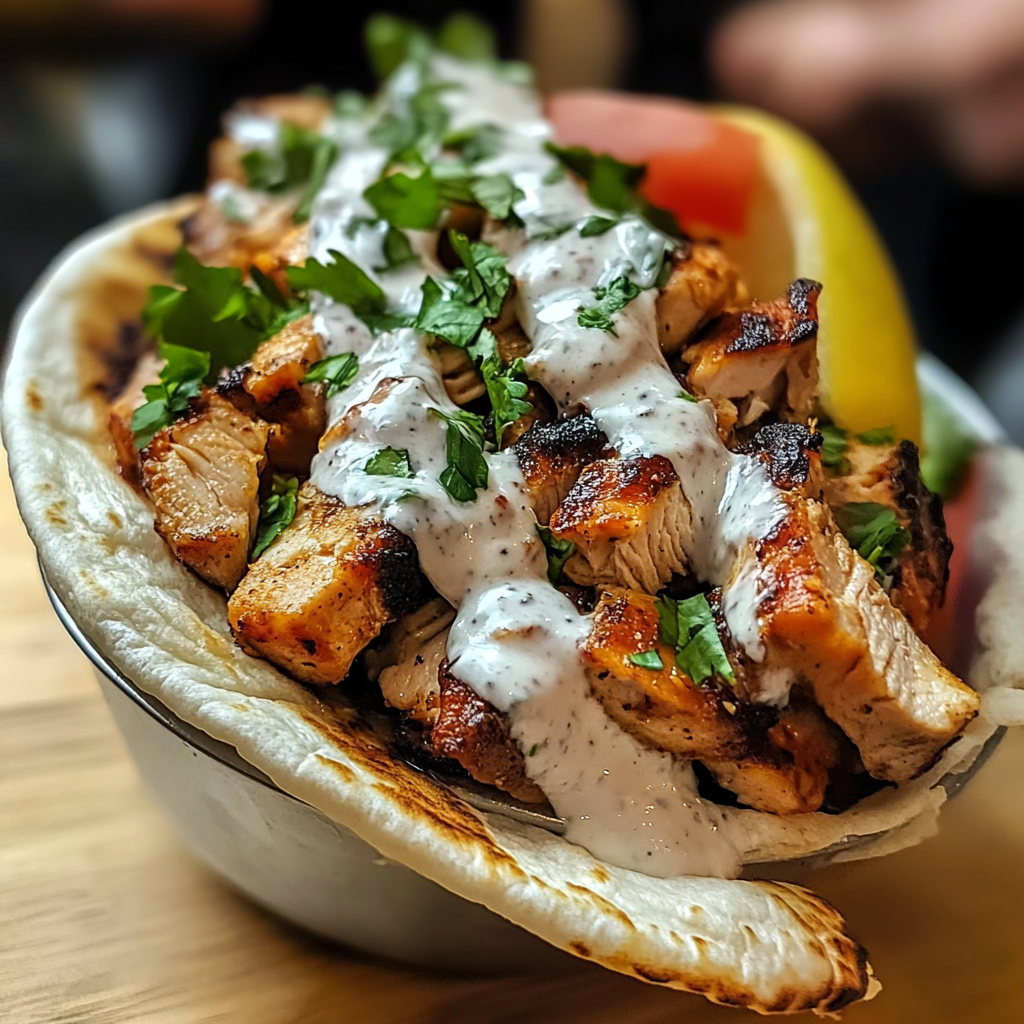 Experience the vibrant flavors of the Middle East with this Juicy Chicken Shawarma with Garlic Sauce. Tender marinated chicken thighs are grilled to perfection, then wrapped in warm pita and topped with a creamy garlic sauce and fresh vegetables. This delightful dish brings the essence of street food to your kitchen, making it perfect for family gatherings or a cozy dinner. Treat yourself to an unforgettable culinary adventure that’s both satisfying and easy to prepare!
