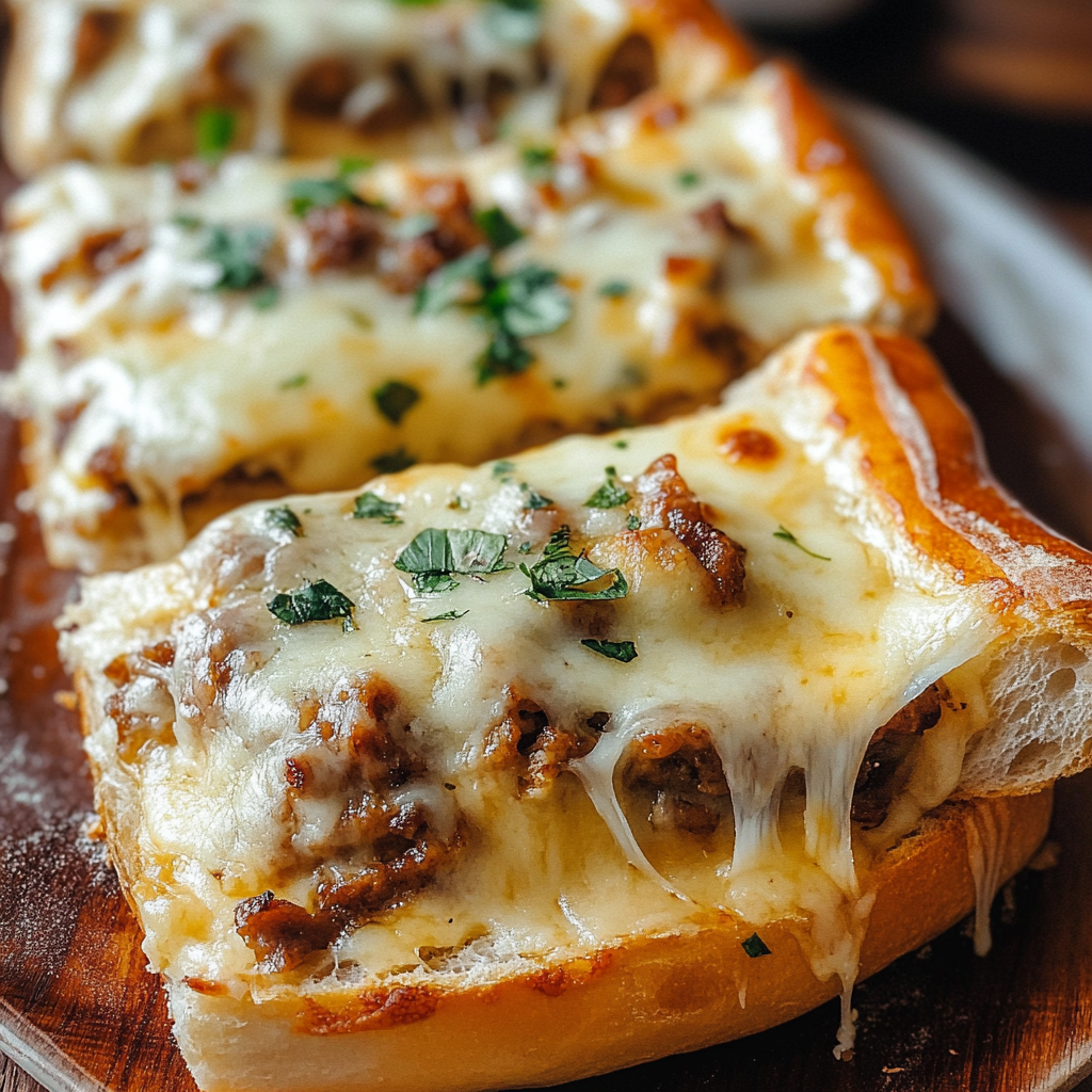 Indulge in the ultimate comfort food with our Philly Cheesesteak Cheesy Bread Scrumptious! This dish combines gooey provolone and cheddar cheese with tender ribeye steak, sautéed bell peppers, onions, and mushrooms all nestled in a crispy French bread loaf. Perfect for game day, family gatherings, or late-night cravings, every bite will transport you to the streets of Philadelphia. Easy to make and utterly satisfying, this cheesy delight is sure to become a favorite in your household.
