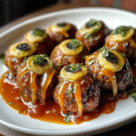 Get ready to impress your guests this Halloween with Monster Mash Meatballs – a delightful blend of savory flavors and festive fun! These juicy meatballs, seasoned with garlic and onion powder and enveloped in a tangy barbecue sauce, are perfect for nibbling at parties or family gatherings. Whether served on skewers or as part of a buffet, they’re sure to be the highlight of your spooky spread.