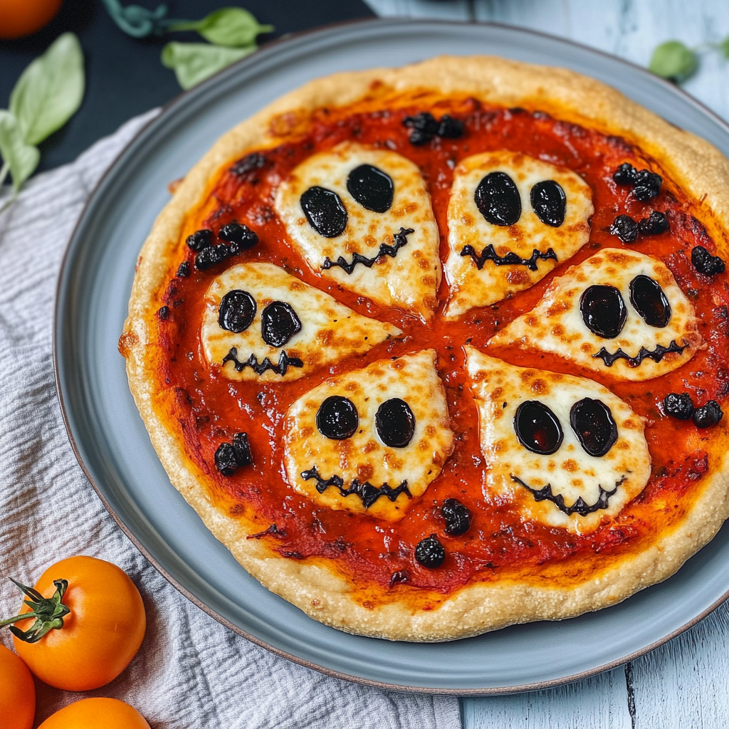 Serve your Spooky Vegan Ghost Pizza: A Hauntingly Flavorful Treat Scrumptious at gatherings or Halloween parties. Cut the pizza into fun shapes using ghost cookie cutters for added flair. Arrange it on a themed platter surrounded by faux cobwebs for a festive display. Pair it with other Halloween-themed snacks like stuffed mushrooms or pumpkin soup to create a delightful spread.