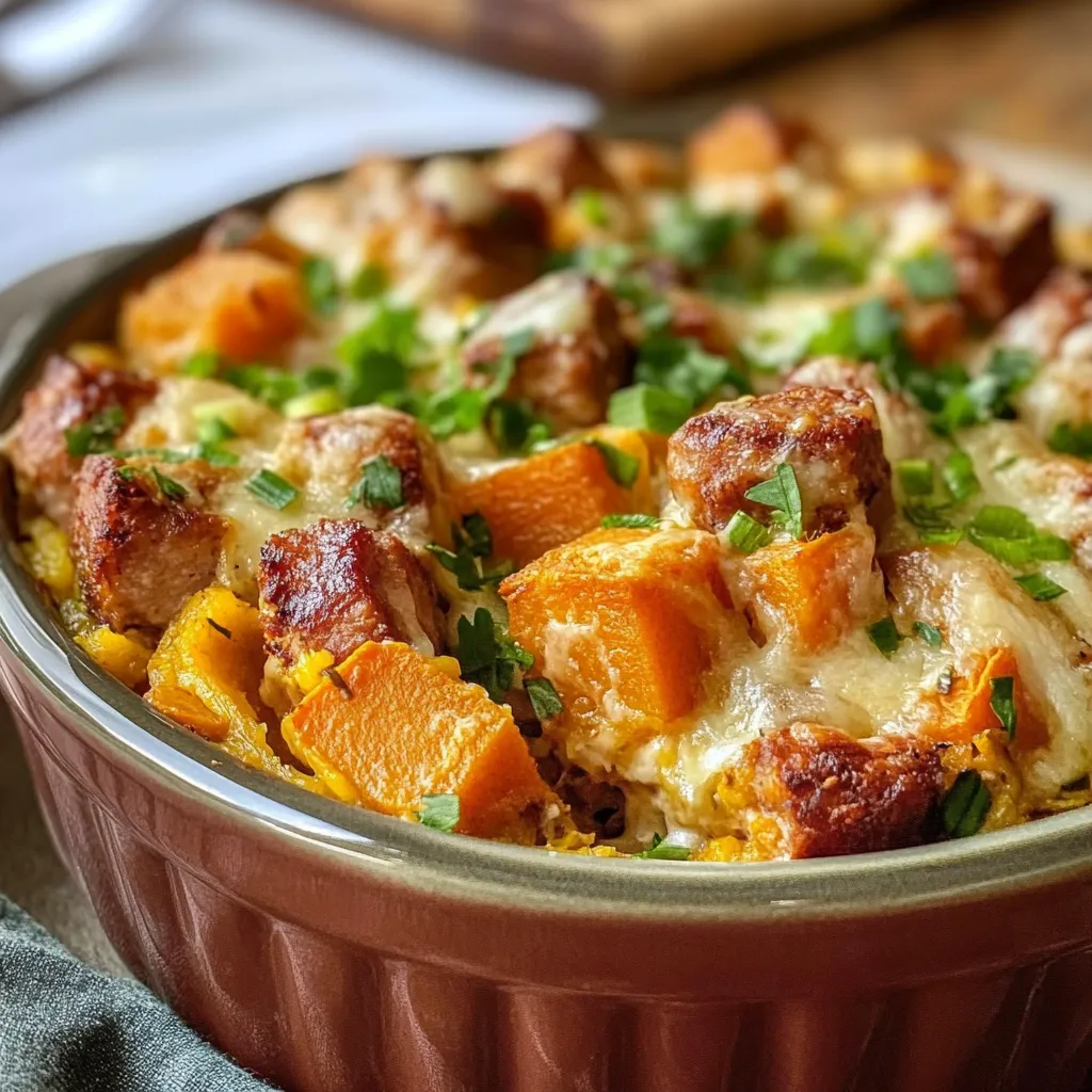 Sweet Potato and Sausage Casserole is a comforting dish that combines the rich sweetness of sweet potatoes with savory sausage, resulting in a delightful blend of flavors. Perfect for family dinners or gatherings, this easy-to-make casserole offers versatility, allowing you to customize it with your favorite vegetables and spices. Enjoy the warm, hearty goodness of this recipe that will surely become a staple in your culinary repertoire.